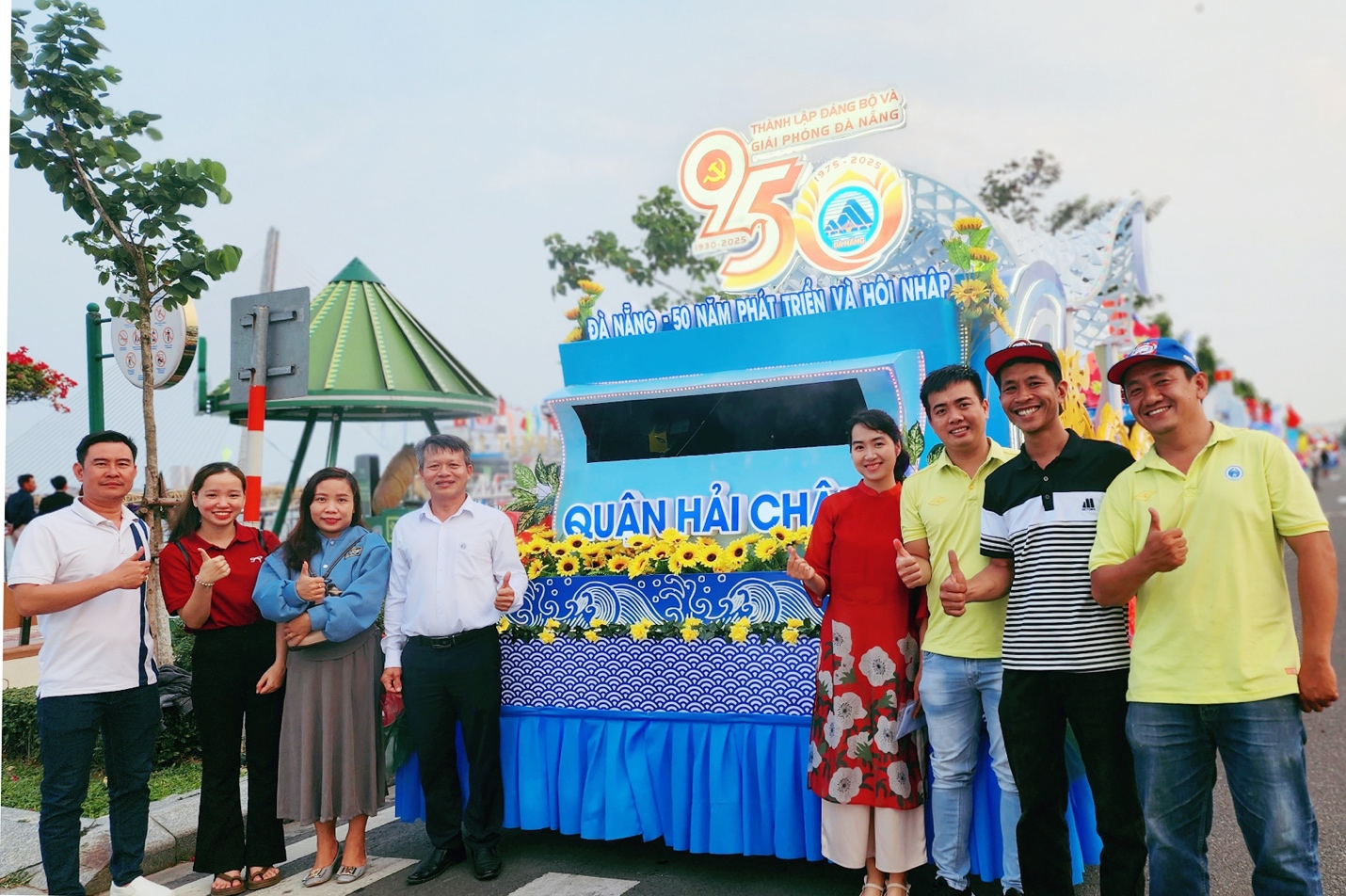 Xe hoa quận Hải Châu được thiết kế với chủ đề "Trái tim thành phố Đà Nẵng - 50 năm phát triển và hội nhập". Với thiết kế tinh tế, từng chi tiết được lựa chọn kỹ lưỡng, xe hoa thể hiện hành trình 50 năm đồng hành cùng thành phố xây dựng, đổi mới và vươn tầm thế giới.