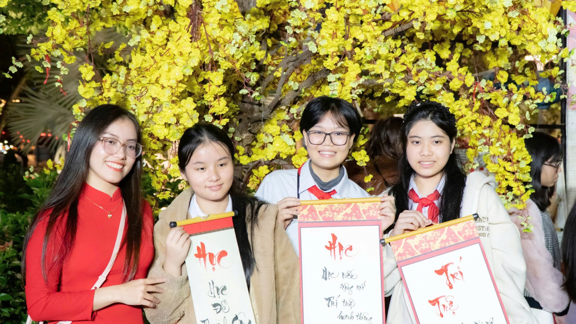 Các bạn trẻ xin chữ đầu năm tại đêm thơ